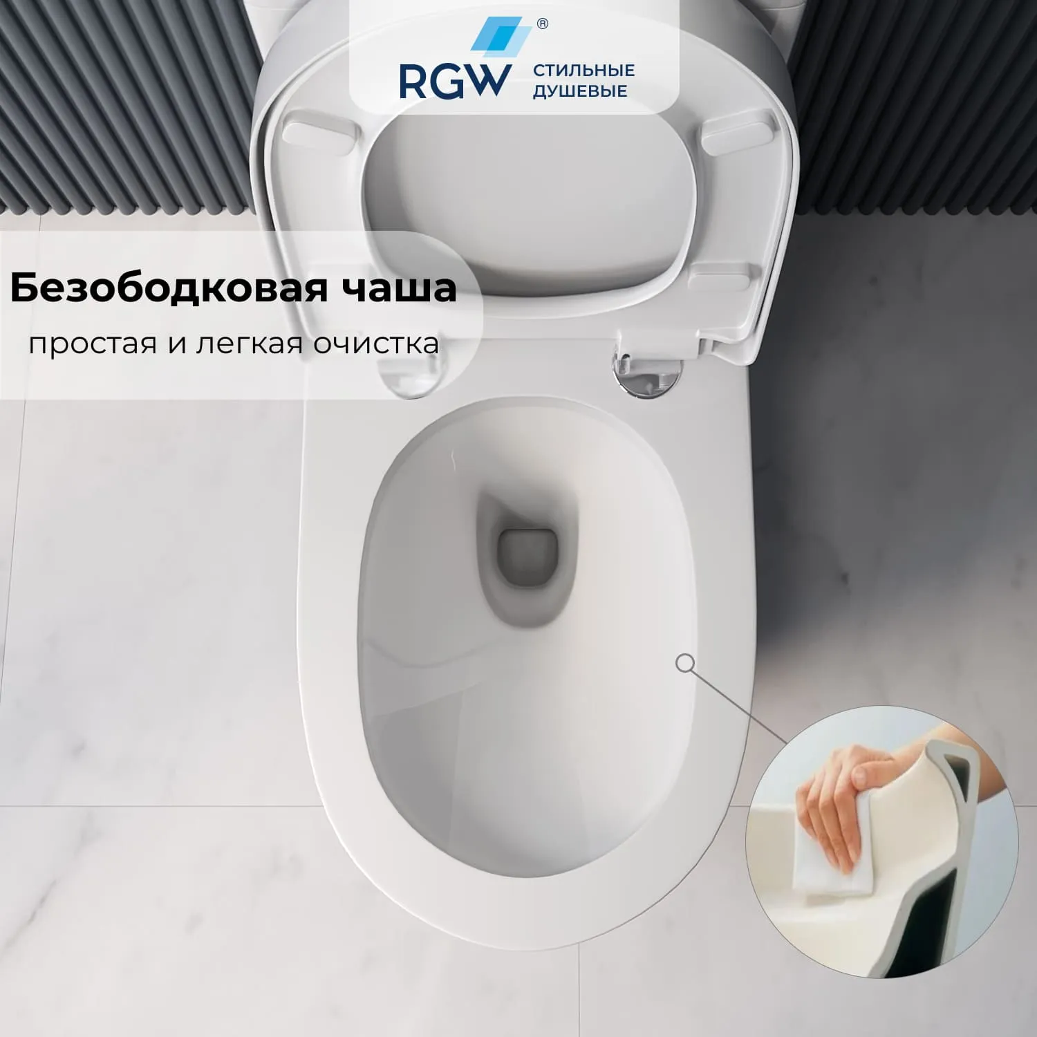 Безободковая конструкция чаши и слив RIMLESS:
