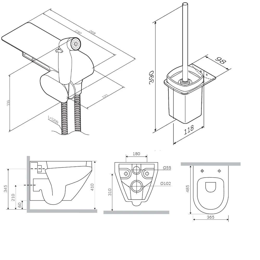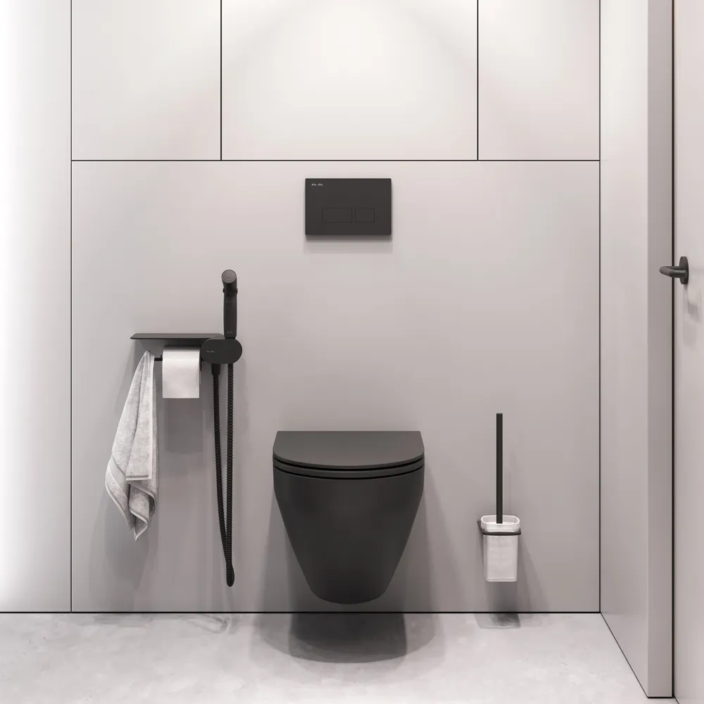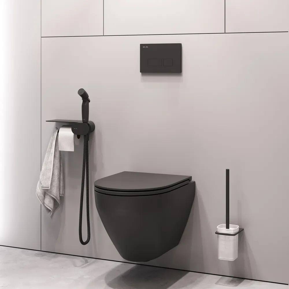 - Особенности: встроенный держатель для туалетной бумаги с полкой и держателем гиг душа