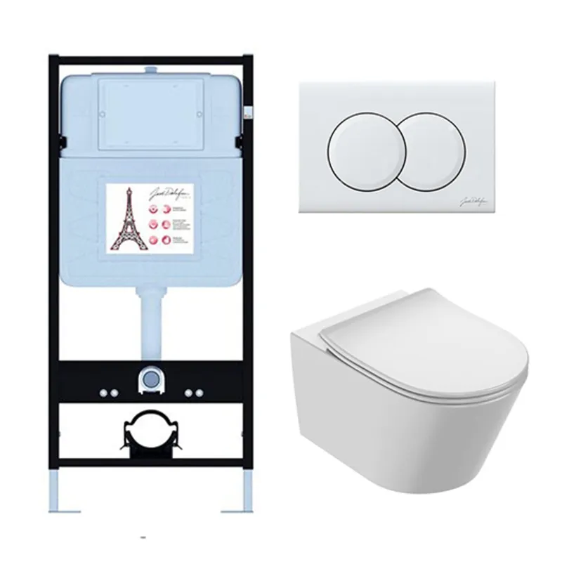 EDAB103-00 Подвесной унитаз без обода с инсталляцией Bastille, сиденье тонкое микролифт, клавиша глянцевый белый (E36495-NF+EDAB102-00+E36496-00)