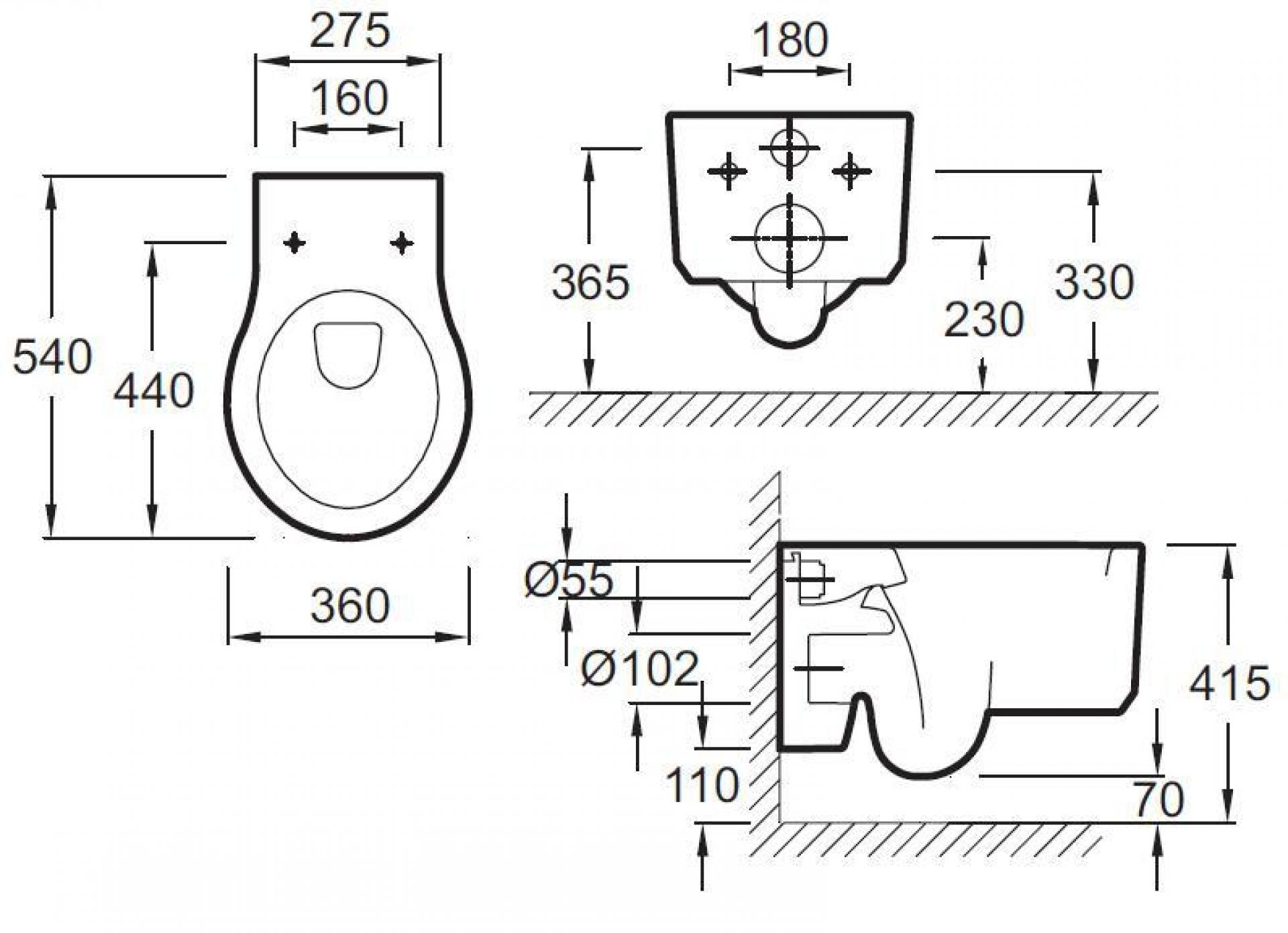 Подвесной унитаз (54 x 36 см).