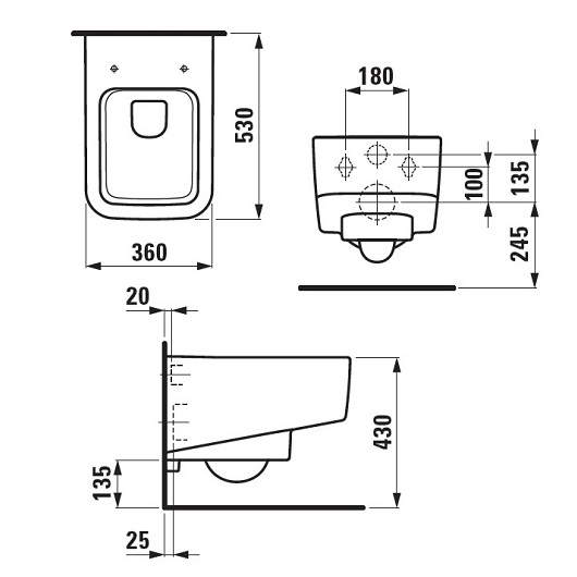 PRO S 8.2096.2.000.000.1 Подвесной унитаз со скрытым ободком (Rimless), глубокое смывание с сиденьем 8.9196.1.000.000.1