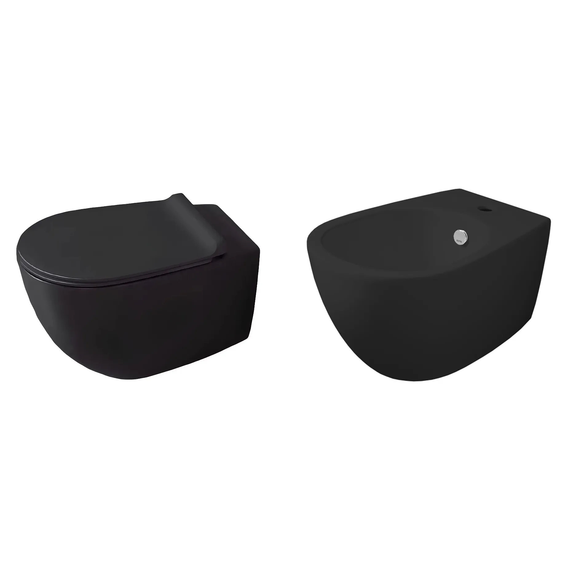 Унитаз и биде подвесные Simas Vignoni VI 18 nero + VI 19 nero + VI 004 nero + F 85 черный