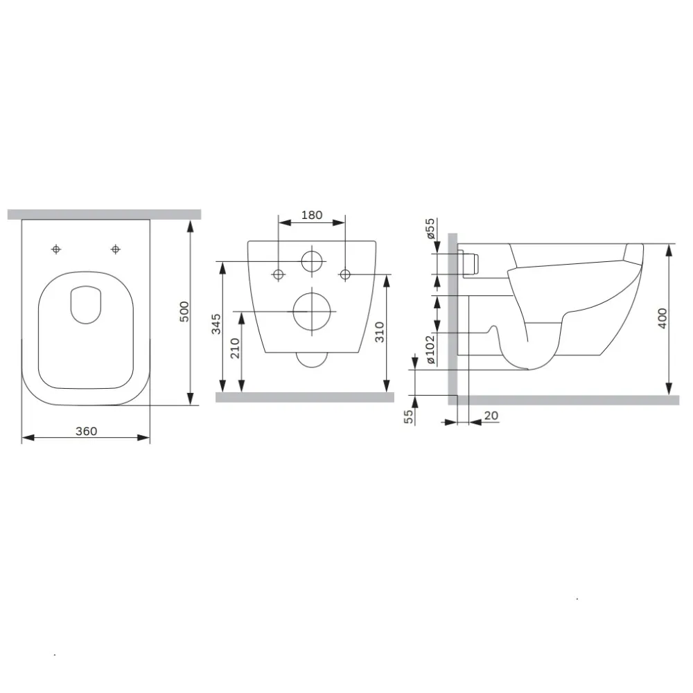 - Тип унитаза: подвесной