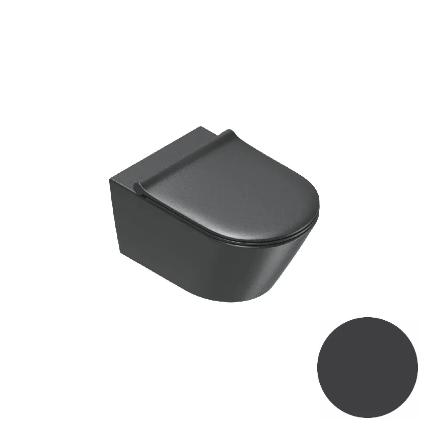 Этот подвесной унитаз имеет размеры 55 см в длину, 35 см в ширину и 34 см в высоту. Изделие выполнено в стильном матовом черном цвете (Nero satinato) и обладает безободковой конструкцией, что дополнительно упрощает процесс очистки. Унитаз комплектуется сиденьем с микролифтом, что повышает комфортность его использования.