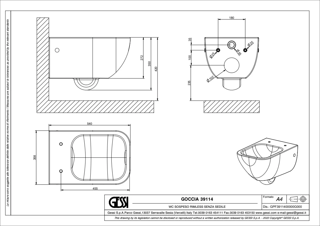 Унитаз подвесной Gessi 39114.531 Matt White Ceramic