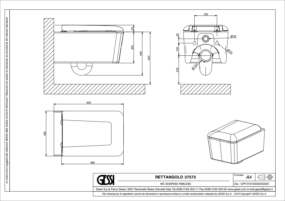 Унитаз подвесной Gessi Rettangolo 37573.518 White Ceramic