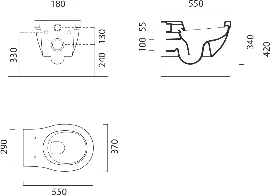 Длина унитаза составляет 55 см, ширина - 37 см, высота - 42 см. Он выполнен в классическом белом цвете, который подойдет под любой интерьер. Вес изделия составляет 17.3 кг.