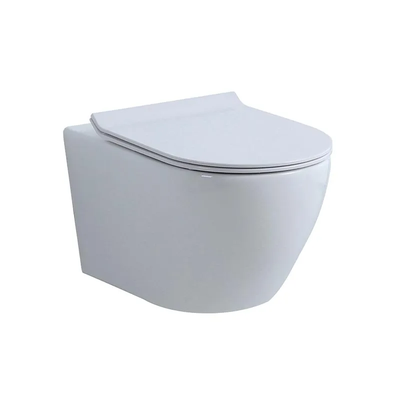 NEMO 882-2 Белый глянцевый подвесной унитаз 530*360*360, TORNADO смыв, в комплекте c крышкой-сиденьем из дюрапласта серебристая окантовка и системой Soft close серебристая окантовка, сифон 180 мм