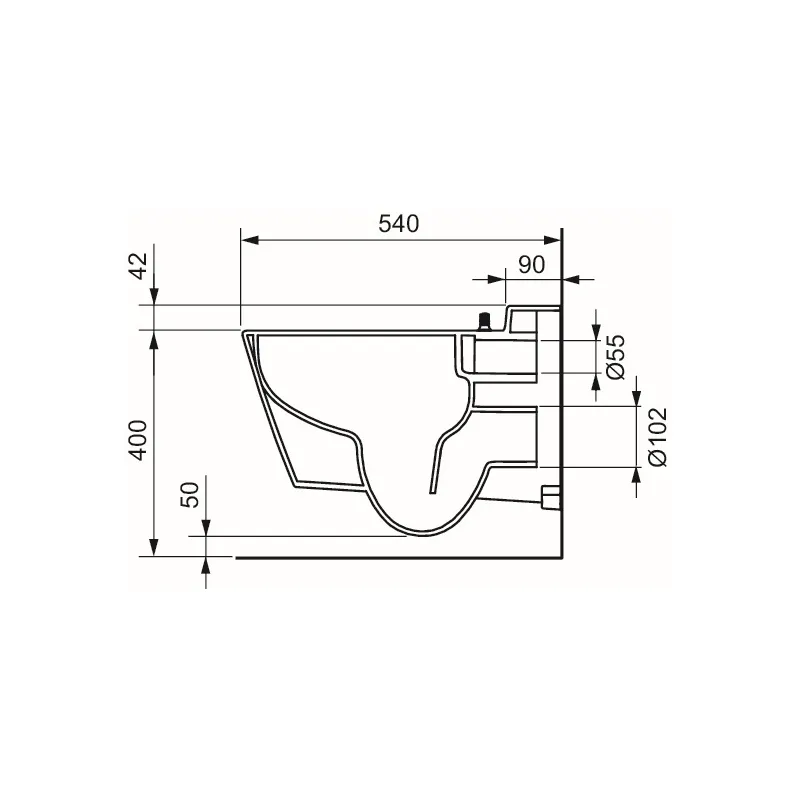 Форма чаши: Безободковая, со встроенной защитой от брызг.