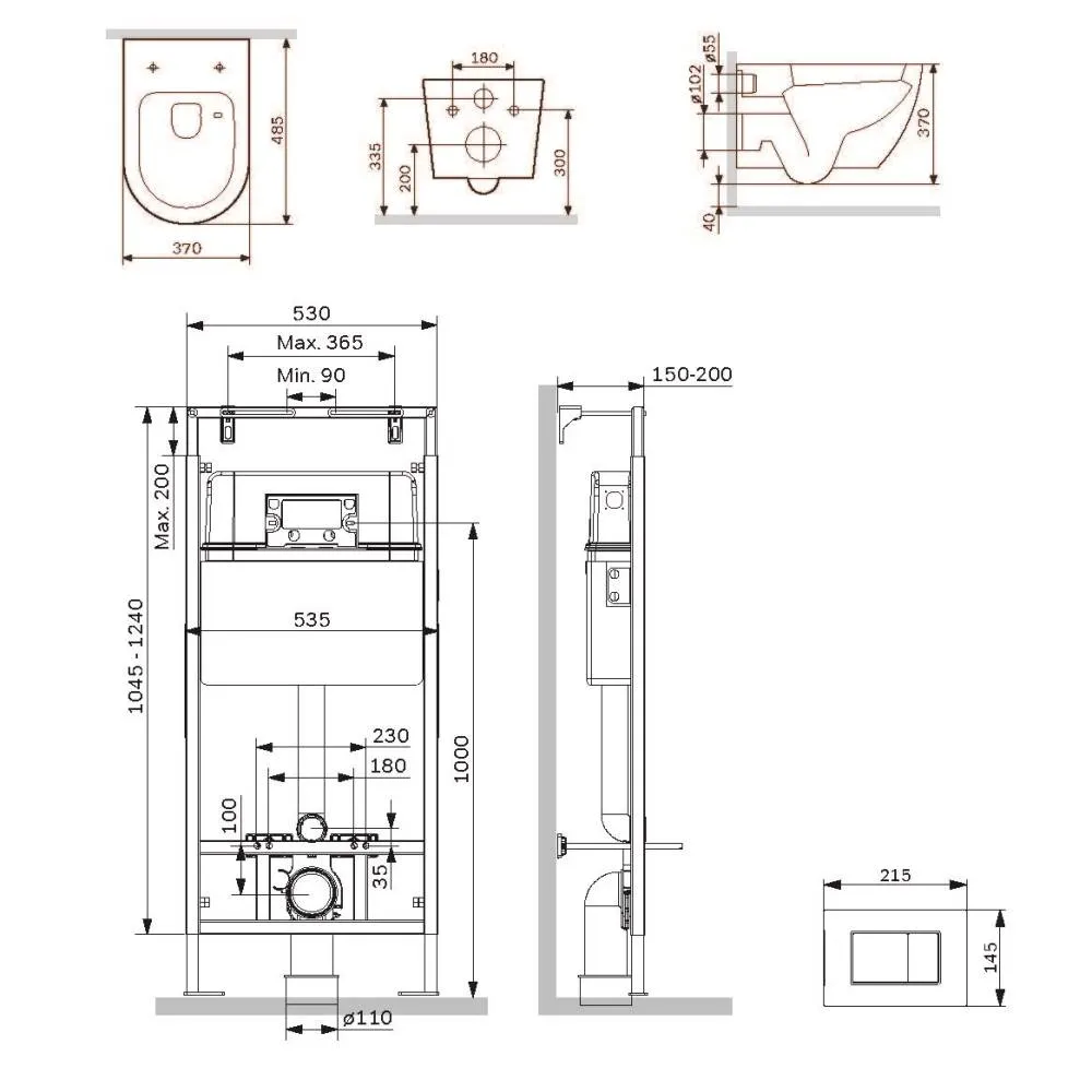 Полностью готовый к установке комплект: система инсталляции с клавишей подвесной унитаз с сиденьем включающий все необходимые крепления патрубки звукоизолирующую прокладку. Экономия пространства благодаря узкому бачку – 120 мм глубиной. Заливной клапан с низким уровнем шума - Класс II согласно европейского стандарта EN 14124.