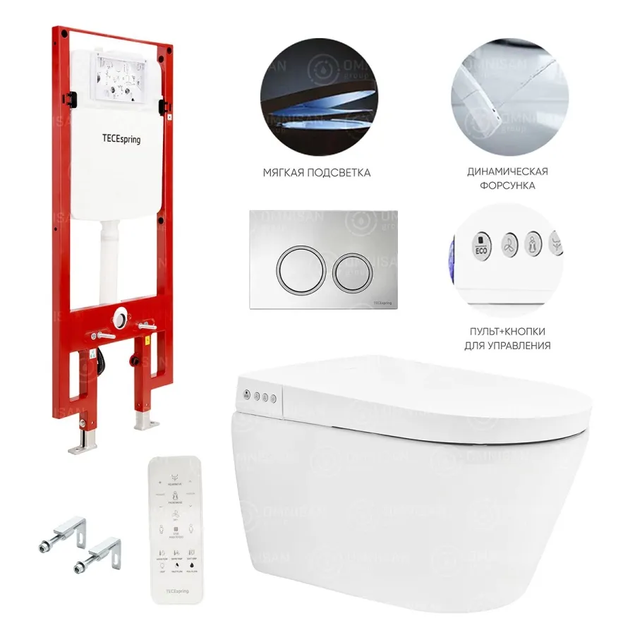 Система инсталляции в комплекте с подвесным унитазом-биде и клавишей смыва (белый | клавиша хром).