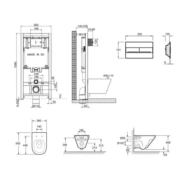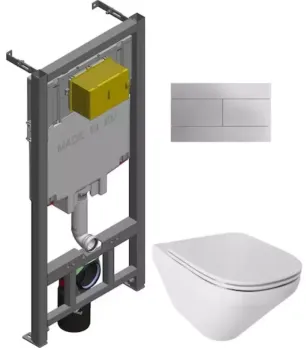 E21776RU-00 Унитаз c инсталляцией Jacob Delafon Modern Life, сиденье тонкое микролифт, клавиша хром (E29025+E4316+E77168+E77725)