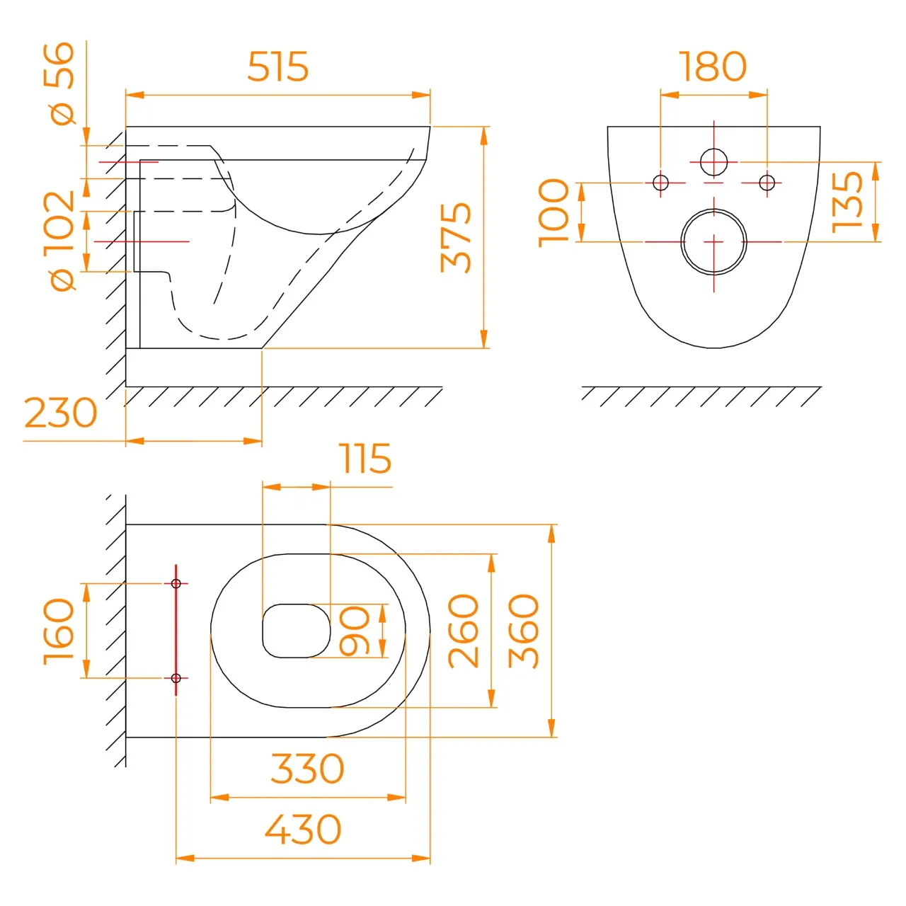 Подвесная чаша унитаза выполнена из санфаянс