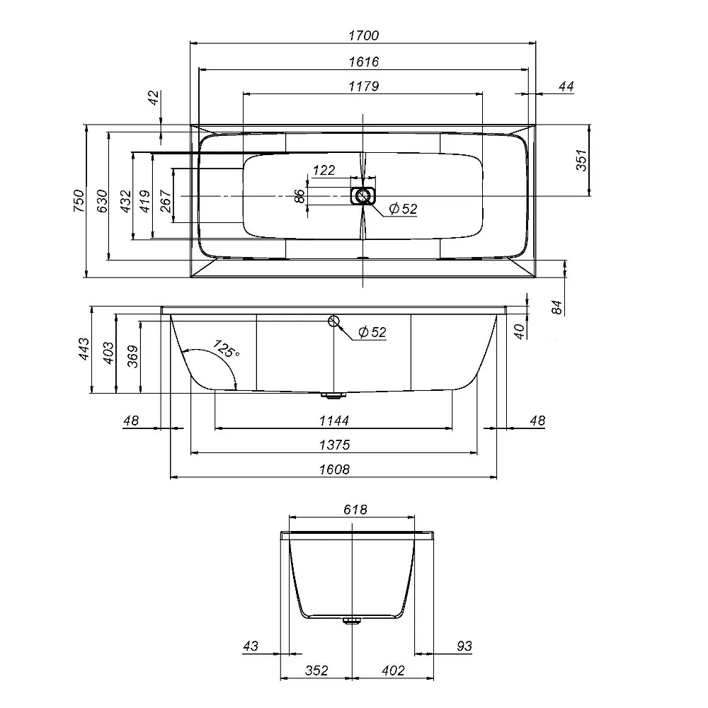 - Диаметр сифона: 52.0