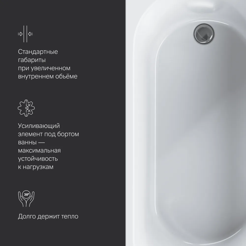 - Расположение перелива: стандартное сбоку
