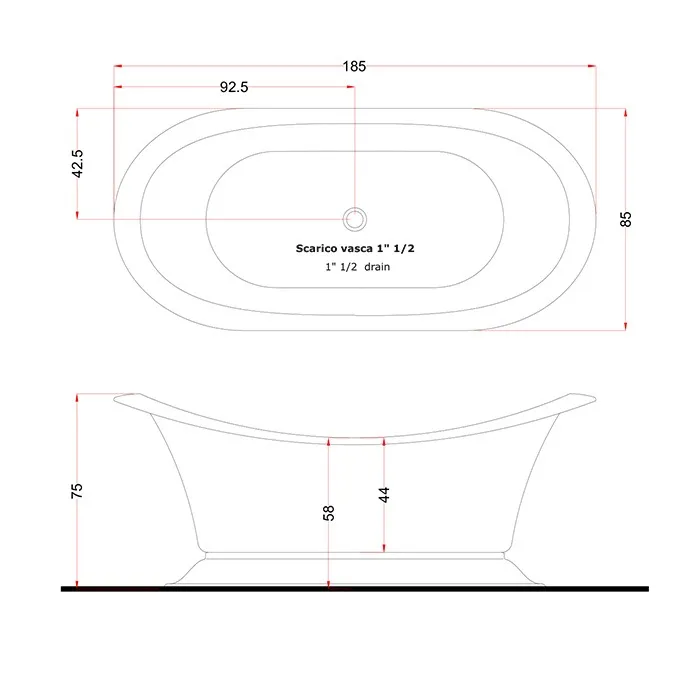 Акриловая ванна Gruppo Treesse Grand Soleil 185x85 V1881XBN800S