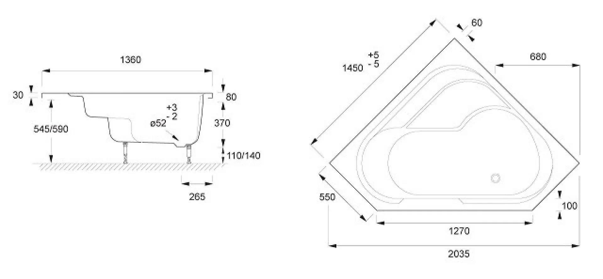Угловая левосторонняя модель (определяется по расположению душевой зоны)