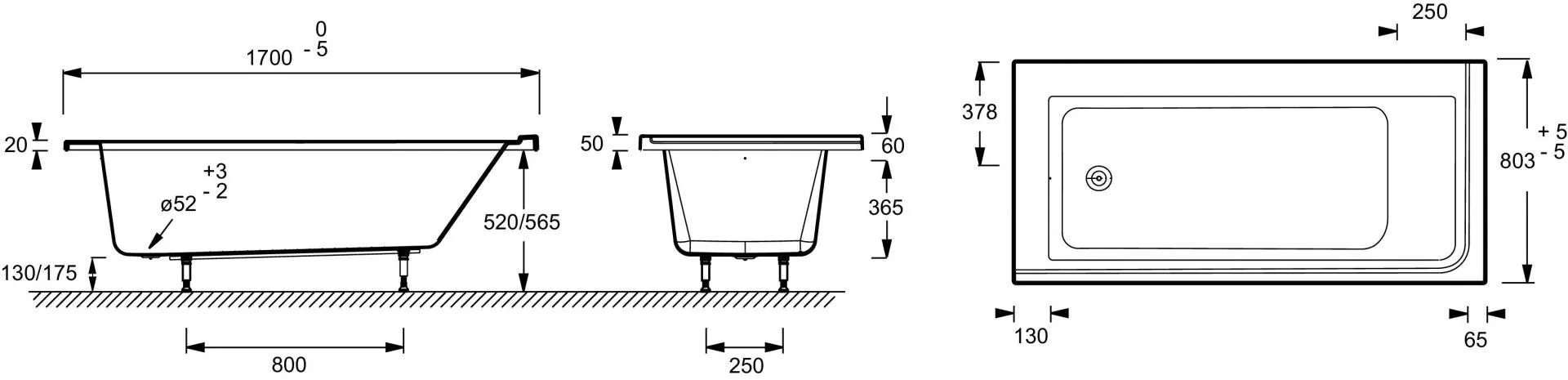 Акриловая ванна Jacob Delafon Formilia 170x80 L E6139L-00левосторонняя.