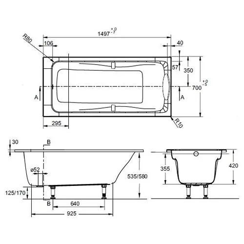 Jacob Delafon ODEON UP E6060RU-00 ванна акриловая 150х70см, прямоугольная ,белая, эргономичная, для установки с каркасом, с гелевой подушкой и хромированными ручками, с регулируемыми ножками