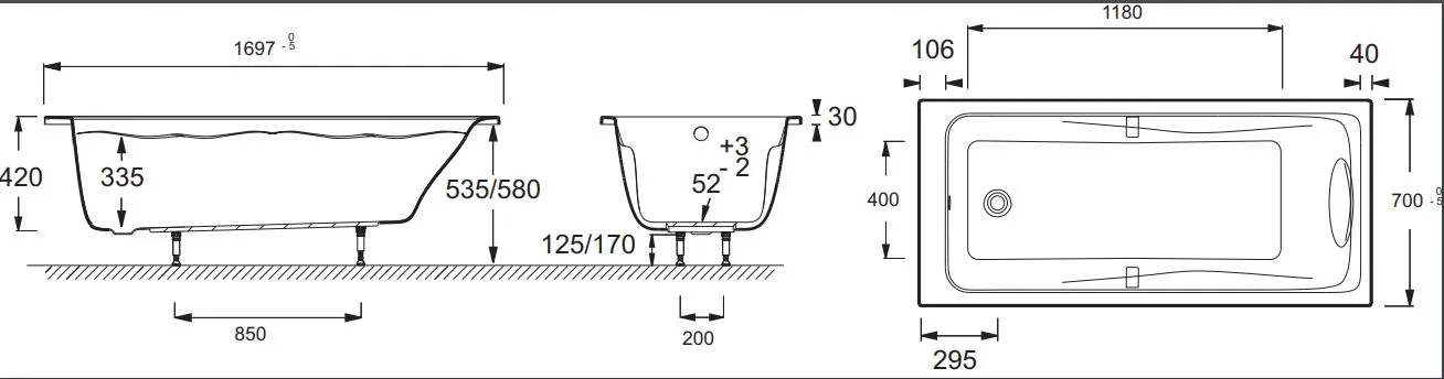 - Смягченные углы с внутренней стороны чаши ванны облегчают уход.