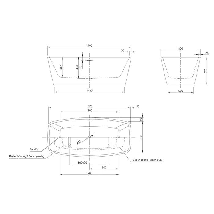 Knief 0100-284 CUBE Ванна акриловая отдельностоящая 170х80х60H, щелевой перелив, белая глянцевая