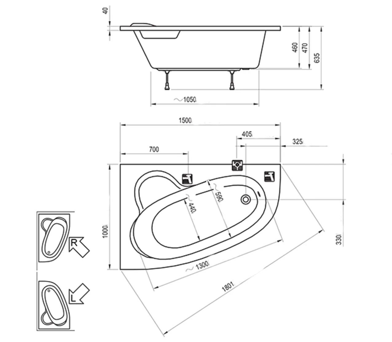 | Размер ванны | 150 х 100 |