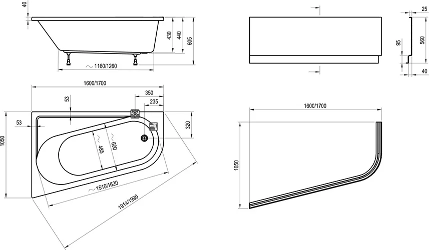 Аксессуары: панель с креплением, сточный комплект, опорная конструкция.
