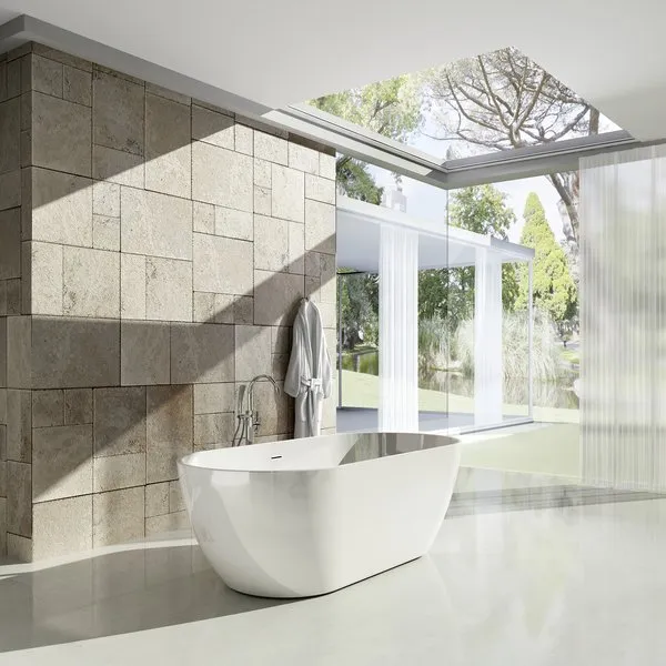 Ванна Freedom – ваша территория свободы и релаксации. В округлой чаше будет просторно одному и комфортно вдвоем: торцевые стенки имеют симметричный наклон, а слив устроен в центральной зоне. У отдельностоящей ванны нет широких бортов, зато с любой стороны к ней можно придвинуть банкетку или столик.