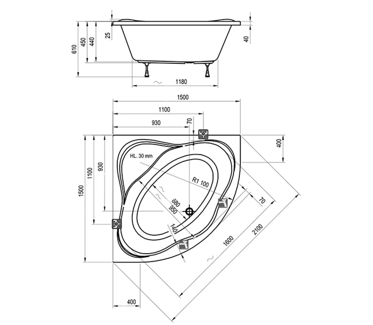 - Аксессуары: передняя панель, сточный комплект для ванны, подголовник