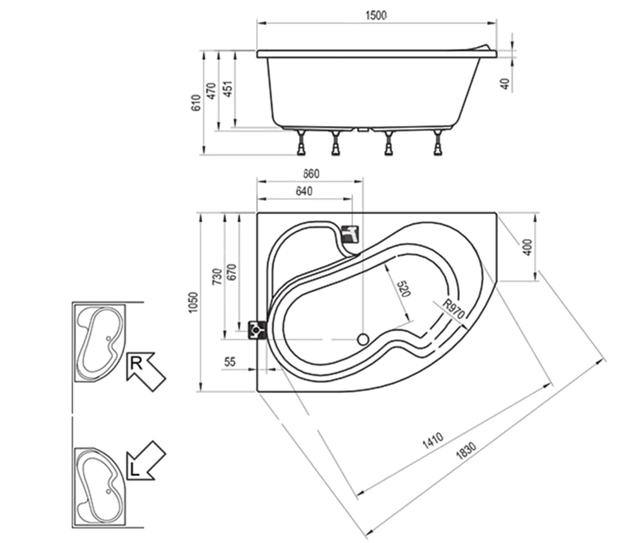 Rosa I – просторная угловая модель с плавно закругленными, максимально естественными формами. В диагональной чаше, сужающейся к ногам, легко вытянуться практически в полный рост. Душевая зона оборудована интегрированным сиденьем и прямым безопасным дном: под душем можно сидеть или стоять.