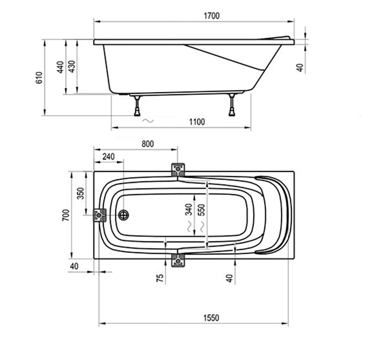 | Размер ванны | 170 х 70 |