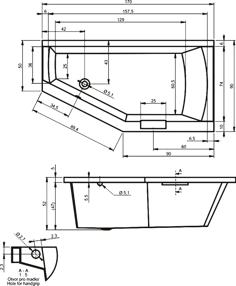 Акриловая ванна Riho 170x90 BA8900500000000(B032001005)