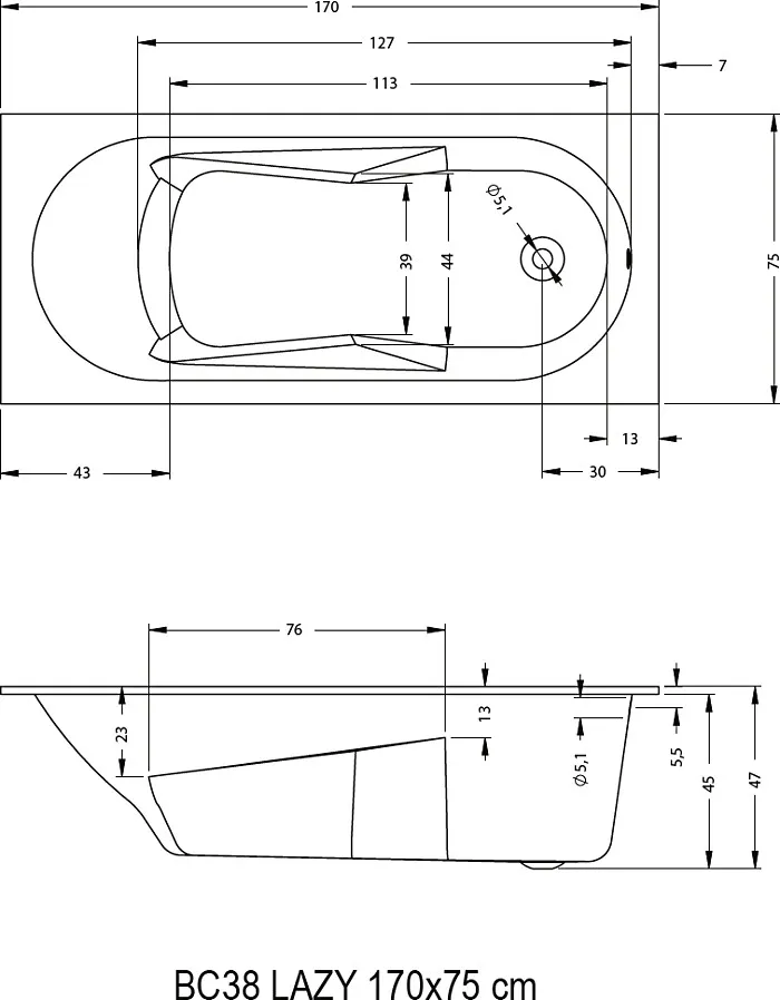 Акриловая ванна Riho 170x75 BC3800500000000 (B078001005)