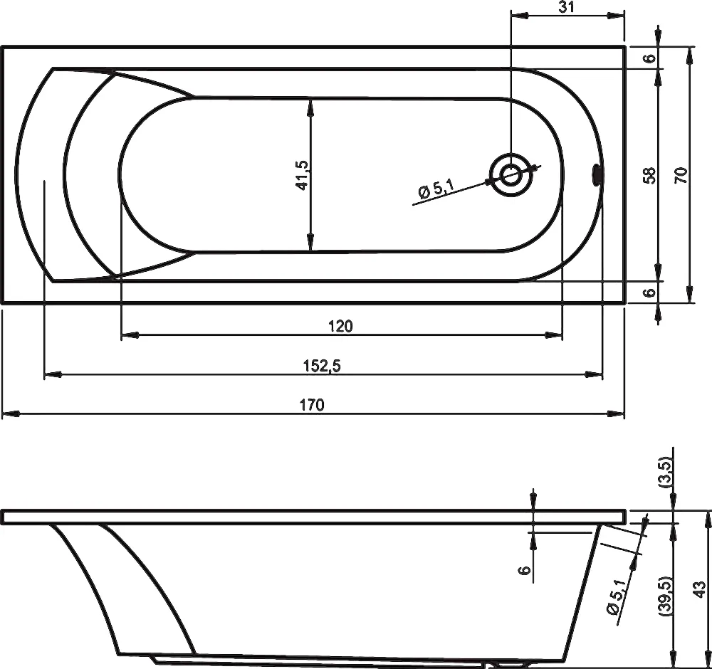Акриловая ванна Riho 170x70 BB6200500000000 (B060001005)