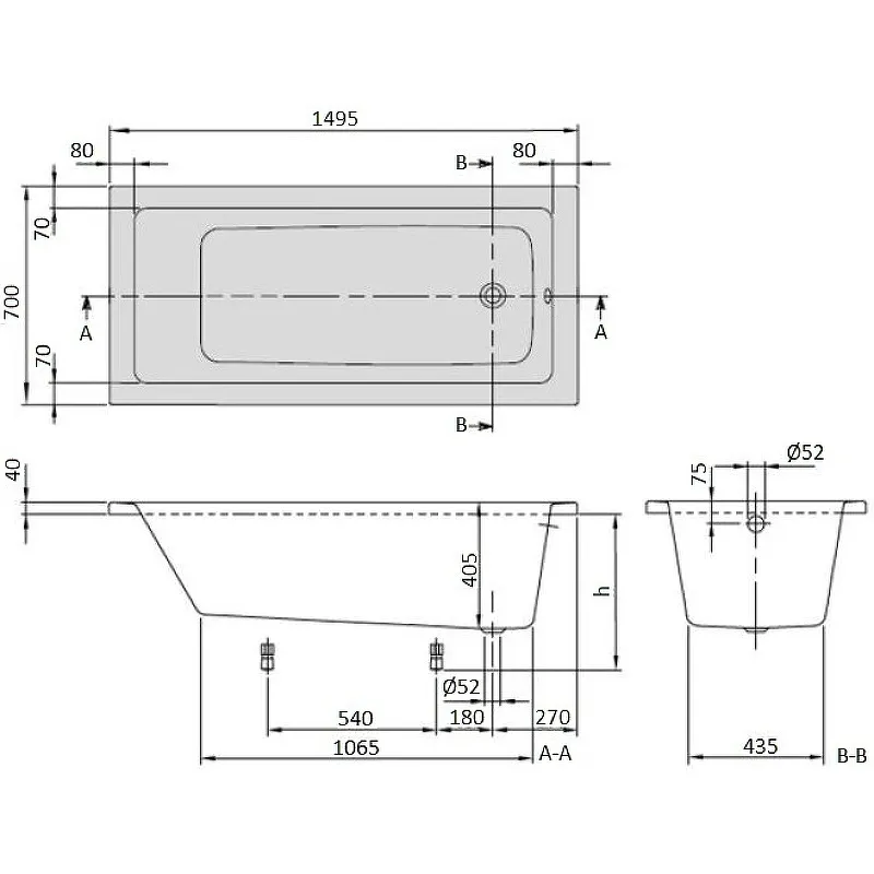 Акриловая ванна Villeroy&Boch Targa 149.5x70 UBA150NES2V01+U99740000