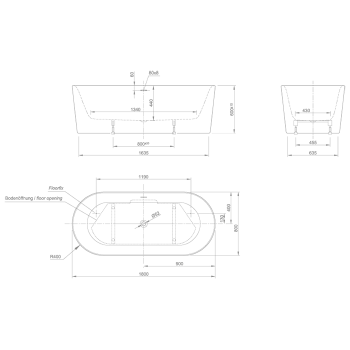 Акриловая ванна KNIEF Fresh 180x80 0100-030-07