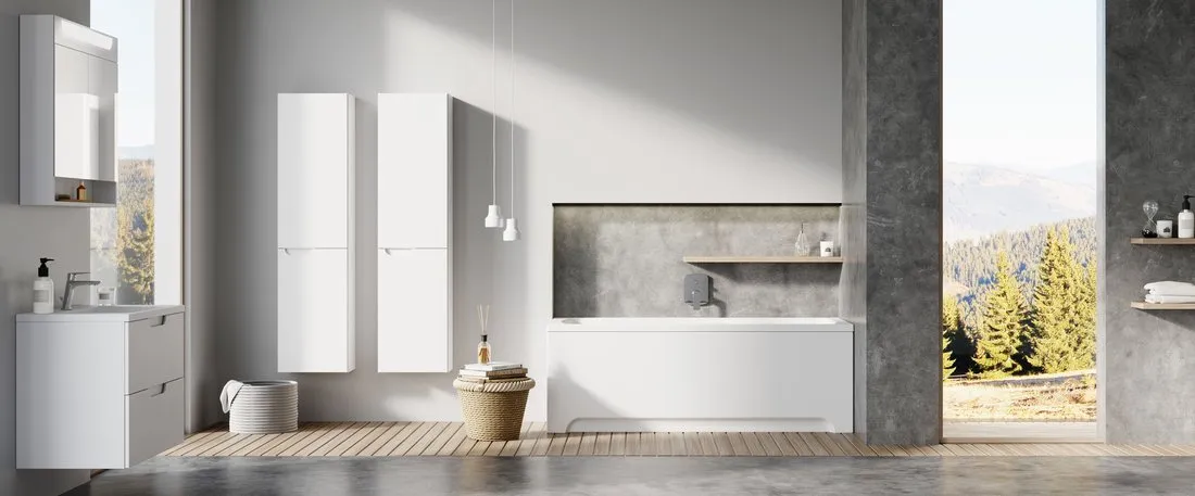 На ванну можно установить шторку для прямоугольных ванн CVS2, CVS1, VS2, VS3, VS5, PVS1, NVS1, BVS1, BVS2 или дверь AVDP3. В качестве дополнительных аксессуаров можно докупить: опорную конструкцию, переднюю/боковую панели, сточный комплект для ванны и универсальную нержавеющую ручку. На ванну нельзя установить сточный комплект для ванны с заполнением переливом. Широкое дно ванны, дополненное шторой, создает безопасное и комфортное душевое пространство без какого-либо разбрызгивания воды. Ванна гармонично сочетается с остальными изделиями одноименной концепции, а именно: умывальниками, мебелью, унитазом и смесителями.