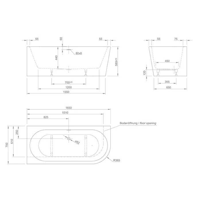 Акриловая ванна KNIEF Wall 165x75 0100-255-R