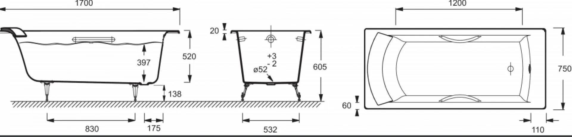 Чугунная ванна прямоугольной формы с антискользящим покрытием, дополнительно комплектуется с хромированными ручками регулируемыми ножками. К данной модели предлагается мягкая подушка под голову.