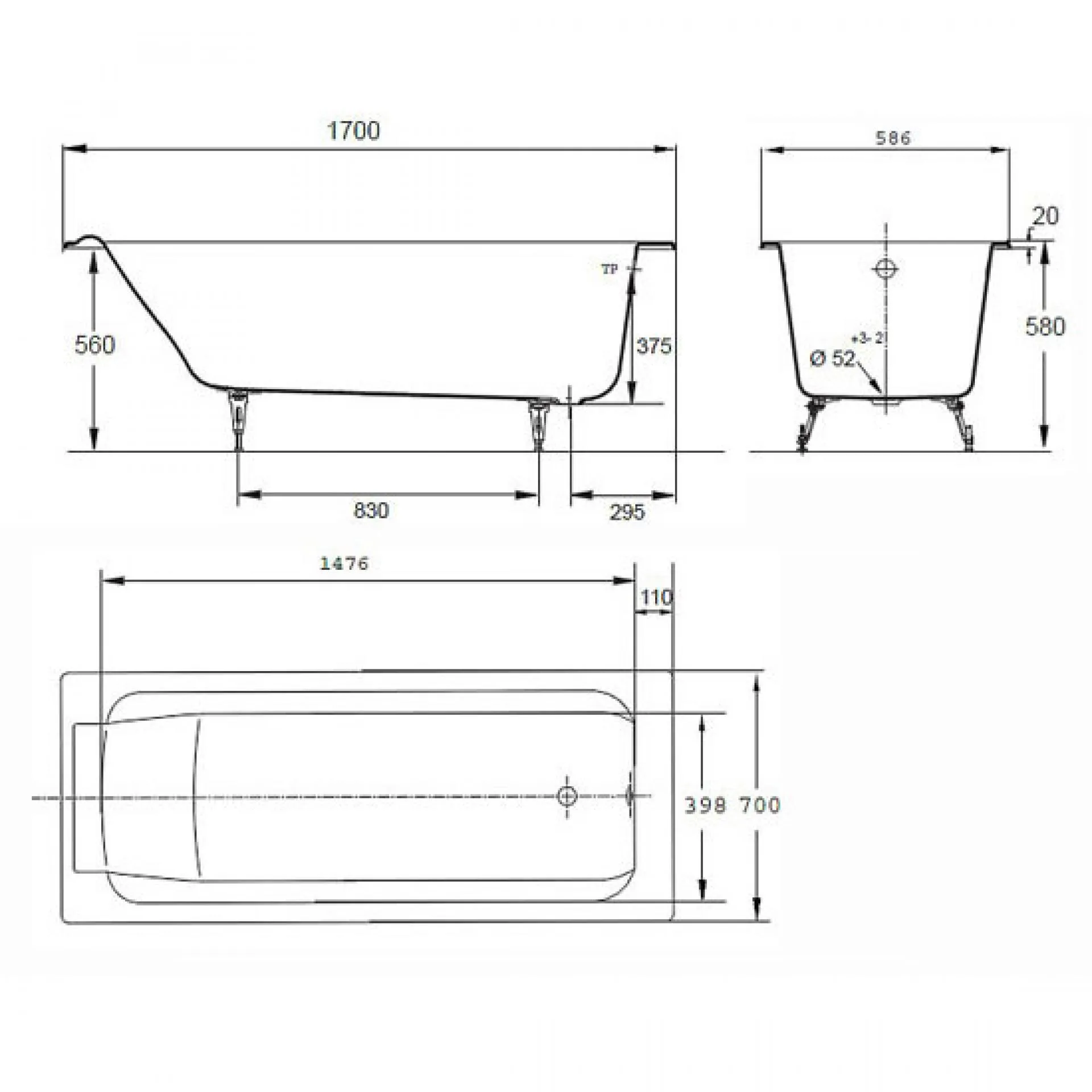 Чугунная ванна Parallel E2948 Jacob Delafon