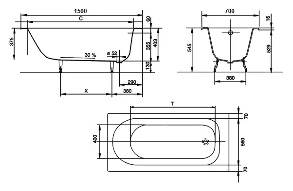 Чугунная ванна Jacob Delafon Soissons 150х70 — это классическая форма, простота и элегантность.