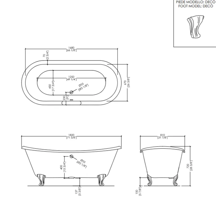 Чугунная ванна Devon&Devon Admiral 182x81 2MRADMIRALPDCRDD