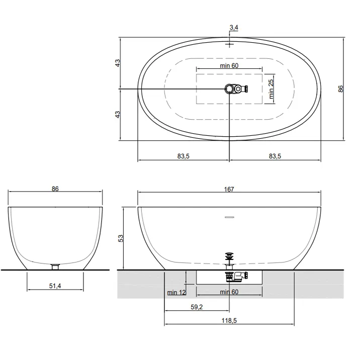 Ванна из искусственного камня Antonio Lupi Reflex 167x86 REFLEX Nebbia/cr