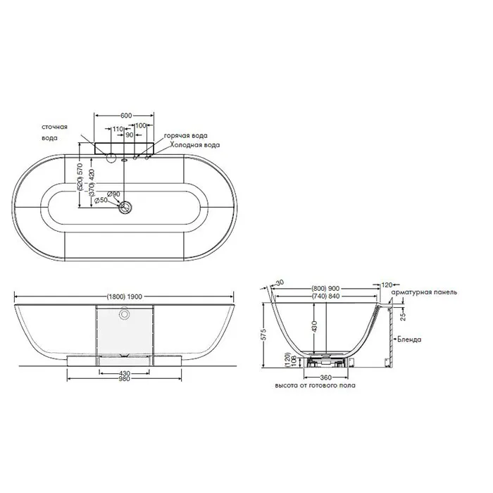 Ванна из искусственного камня Burgbad Crono 190x90 SEAJ190 C0001