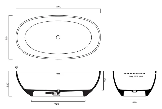 - Эстетика и функциональность: Черная матовая поверхность и овальная форма делают ванну стильным элементом любого интерьера.