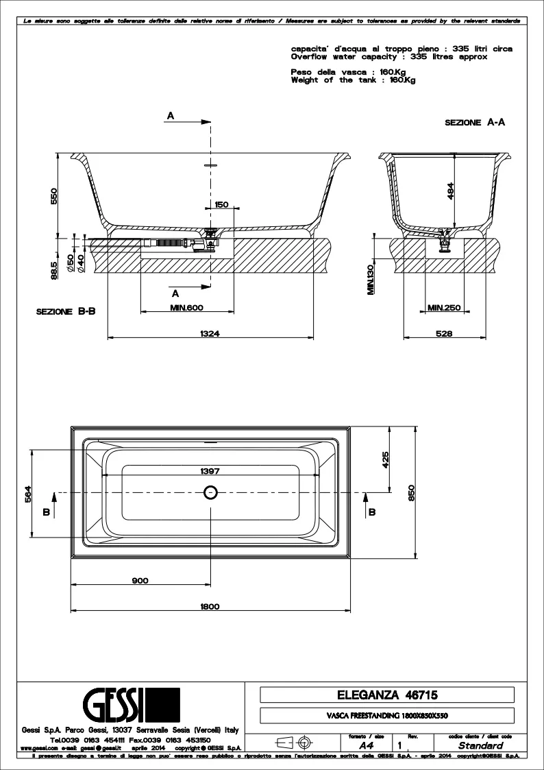 Ванна отдельностоящая Gessi Eleganza 46715.521 Cristalplant Matt White