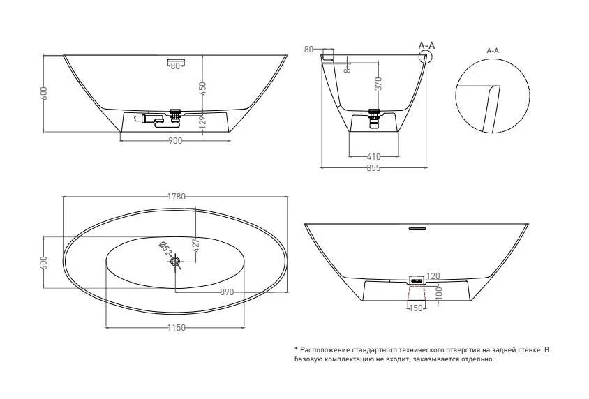 Она напоминает изящную лодку, предназначенную для комфортного путешествия в мир удовольствий. Пологая спинка позволяет полностью расслабиться. Отличительная особенность ванны — интегрированная функциональная полочка, на которую можно поставить шампунь, ароматическую свечу или любимый напиток.