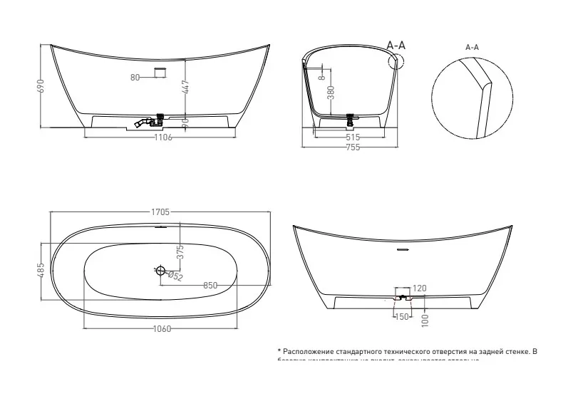 Ванна из искусственного камня Salini Noemi 170.5x75.5 101712G Ванна из искусственного камня Salini Noemi 170.5x75.5 101712G Ванна из искусственного камня Salini Noemi 170.5x75.5 101712G