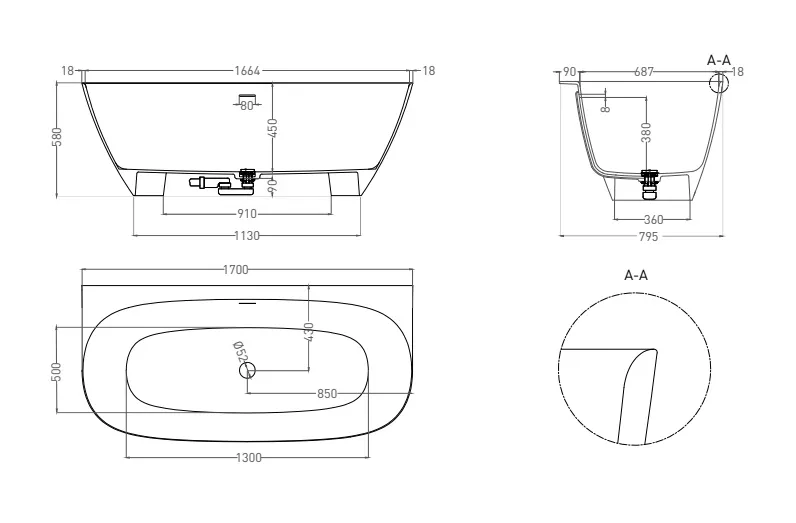 - Впечатление отдельностоящей ванны