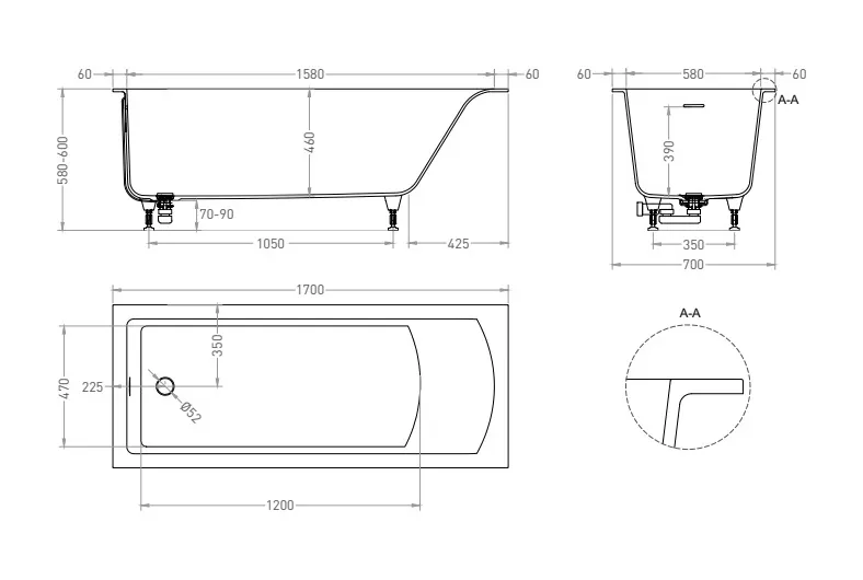 Ванна из искусственного камня Salini Cascata 170x70 104413GF